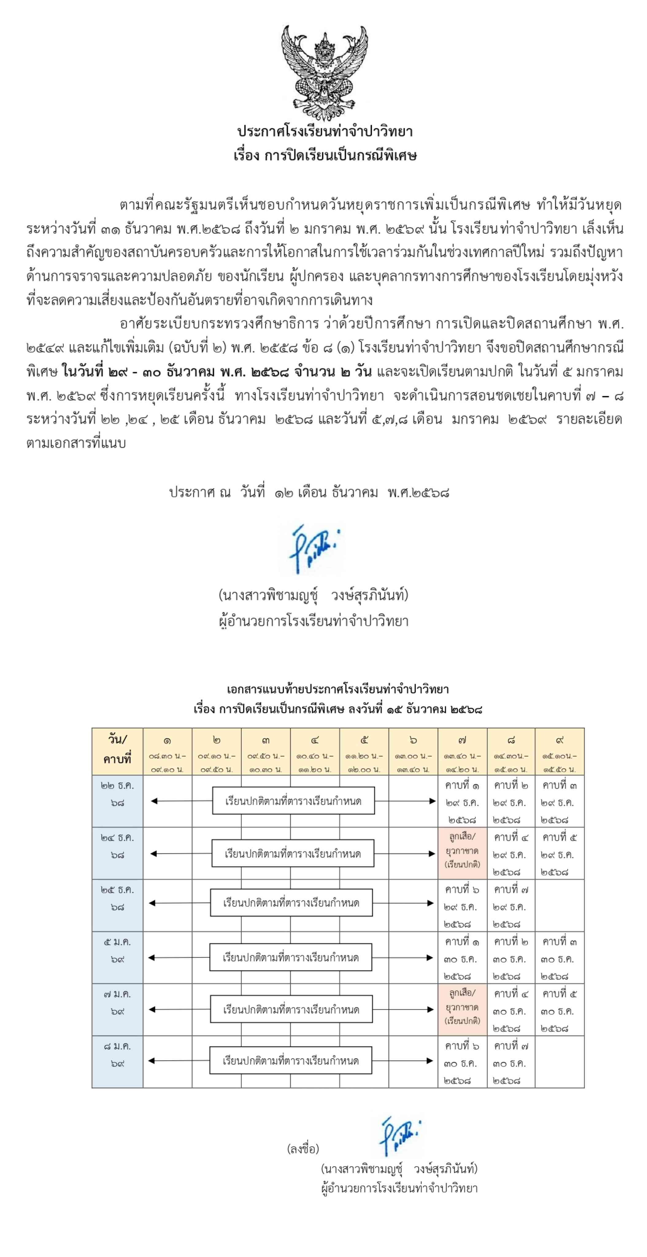 ประกาศปิดวันหยุดกรณีพิเศษ 15 ธ.ค. 68